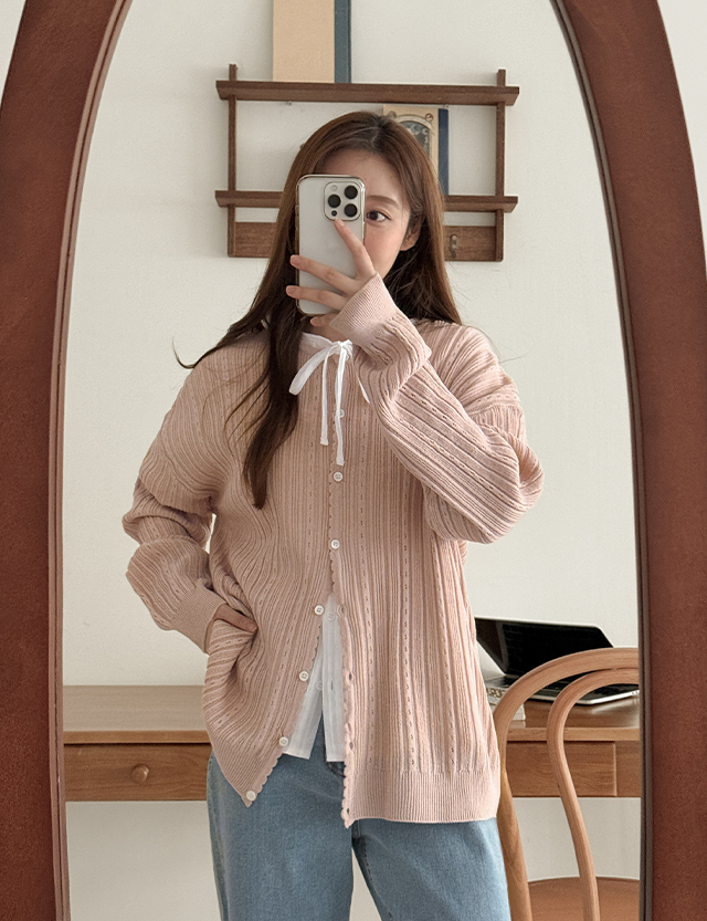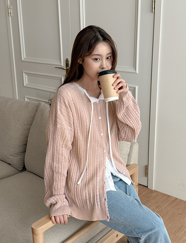 - 여리여리한 무드를 연출해 주는 루즈핏 가디건