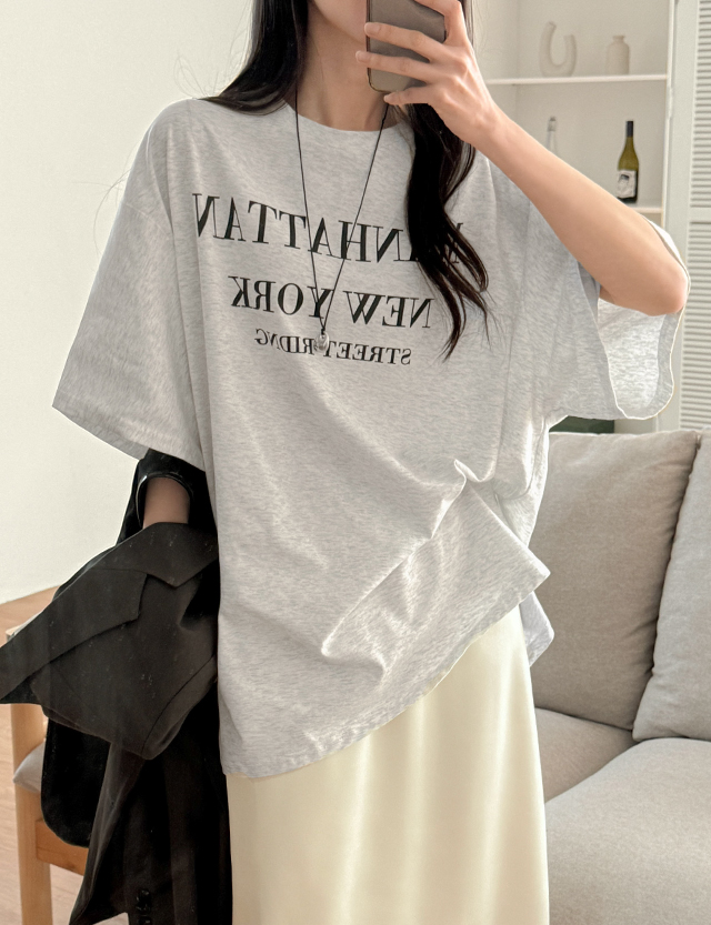 심플리 宽松 레터링 半袖 T恤衫 87307