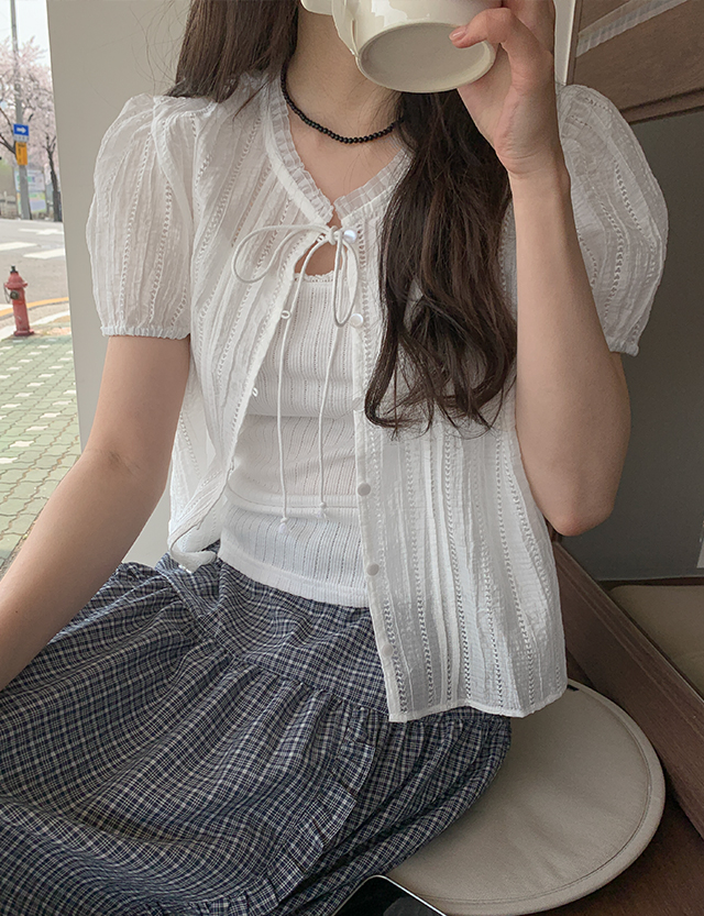 See Through Shirring Cardigan