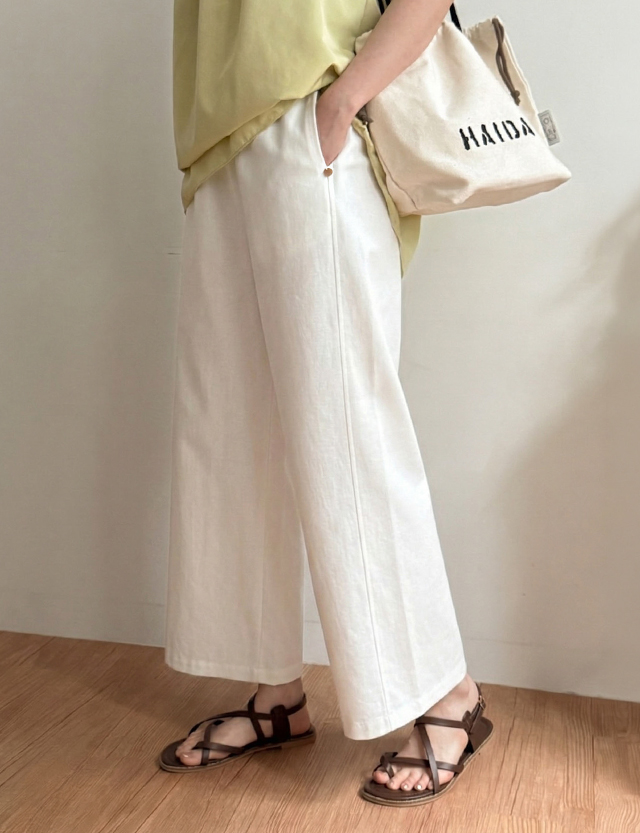 Soft banding wide cotton pants