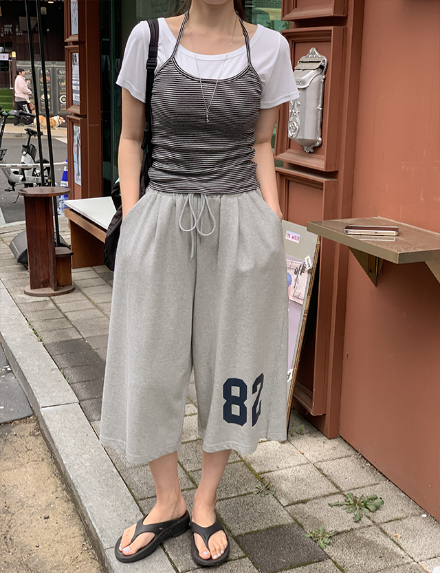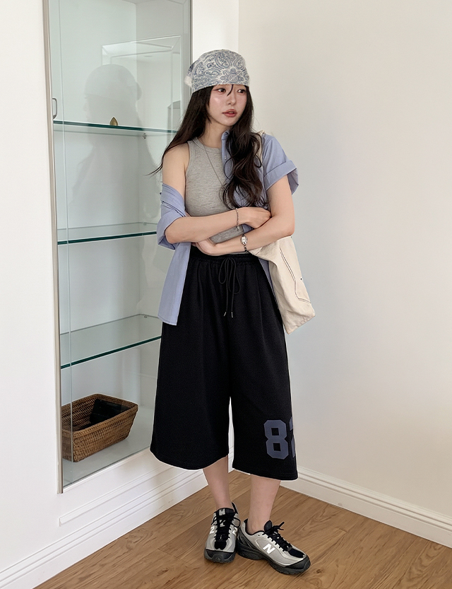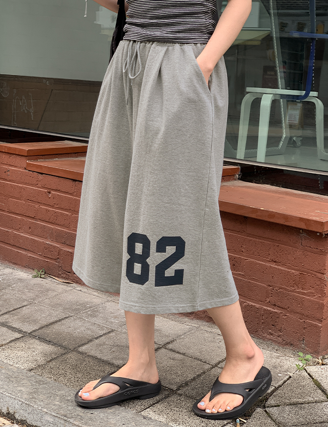 넘버링 印刷 松紧带 七分裤 버뮤다 宽 短裤 87520