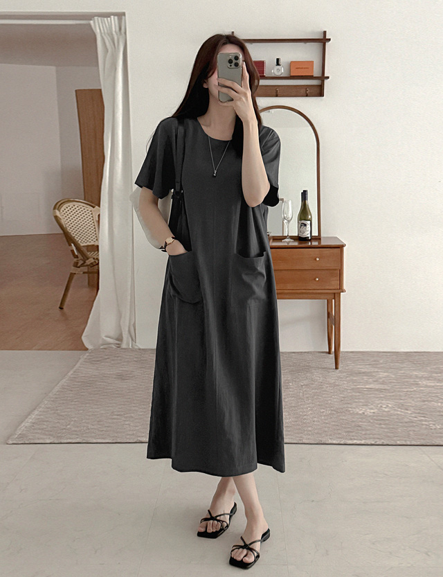 다라민 圆领 长款 连衣裙 87534