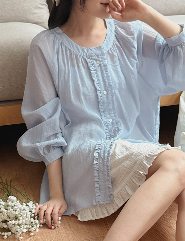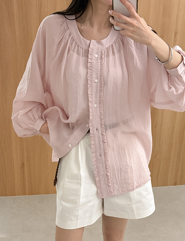 - 넉넉한 루즈핏의 나그랑 프릴 블라우스