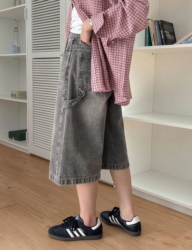 베이맨 뒷밴딩 카펜터 버뮤다 牛仔色 短裤 87350