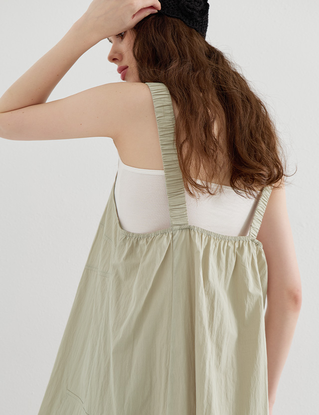 · 어깨 밴드 셔링 디테일로 러블리한 포인트