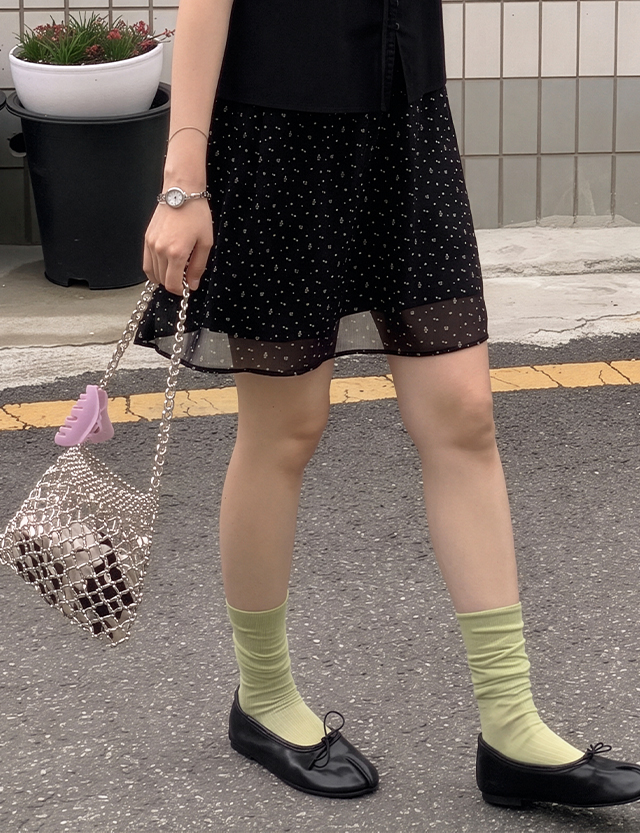 - 가볍게 살랑이는 쉬폰 소재로 러블리한 무드를 더해주는 스커트