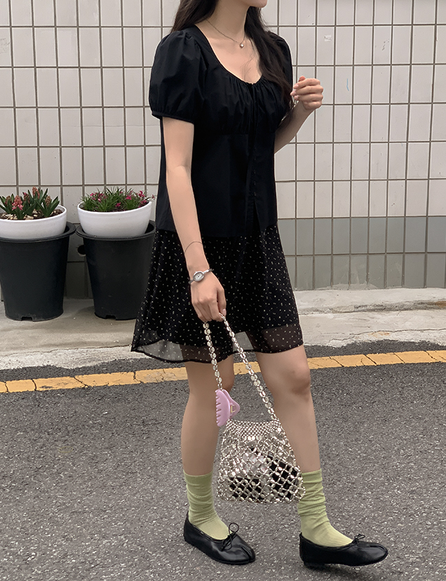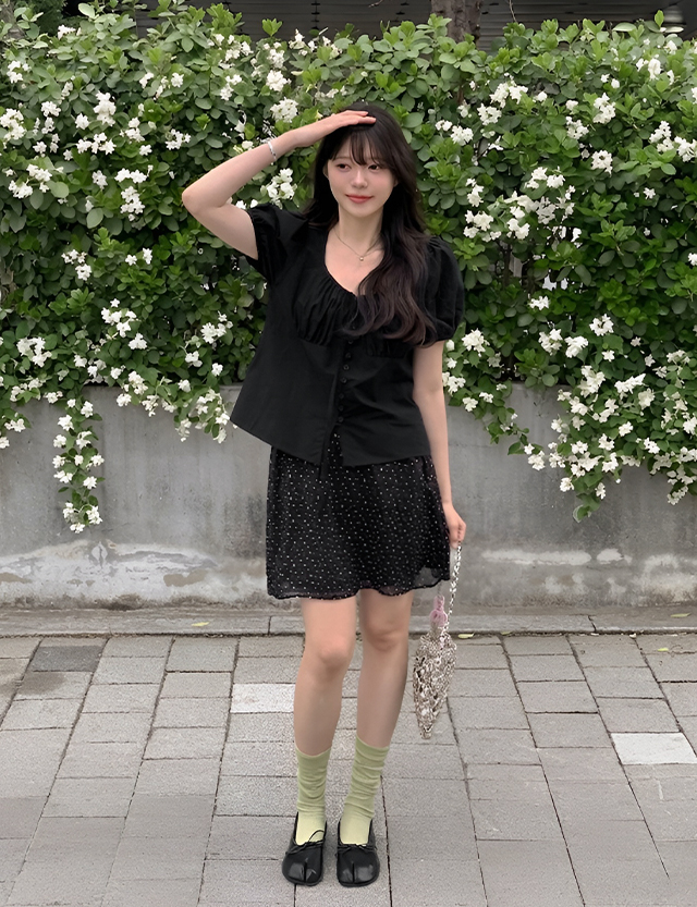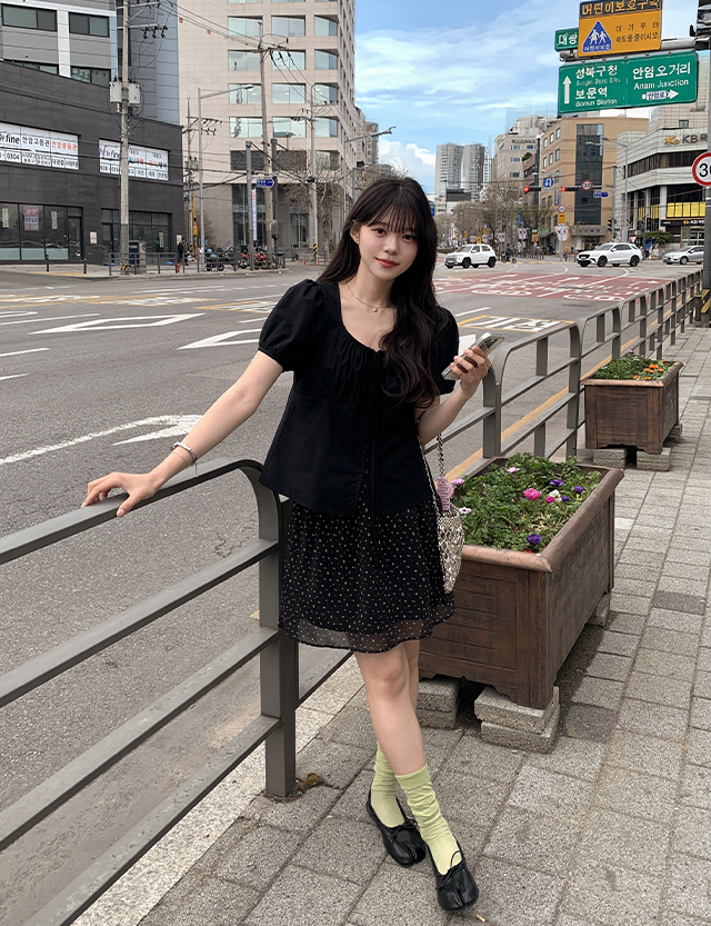 - 과하지 않은 잔꽃 패턴으로 데이트룩이나 나들이 룩으로 추천