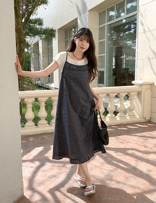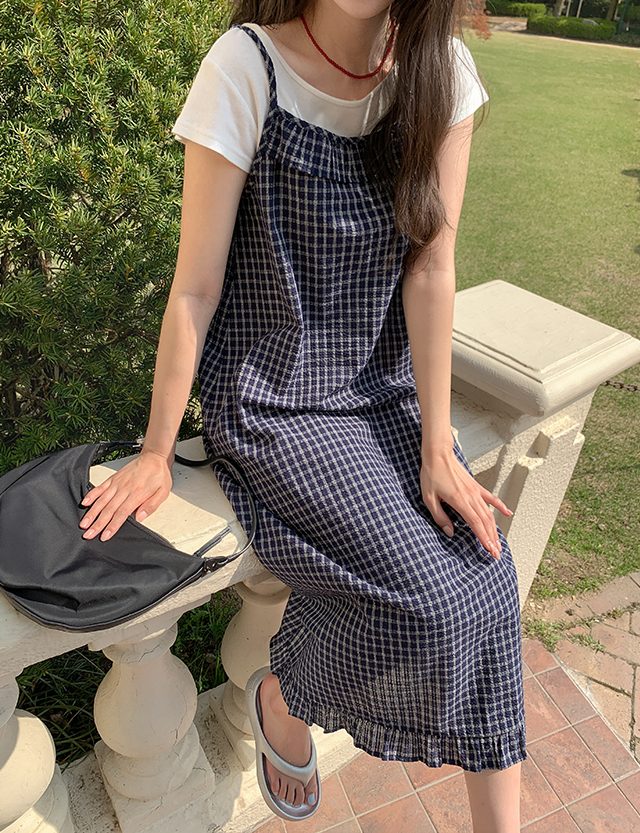 마로나 格子 뷔스티에 长款 连衣裙 87648