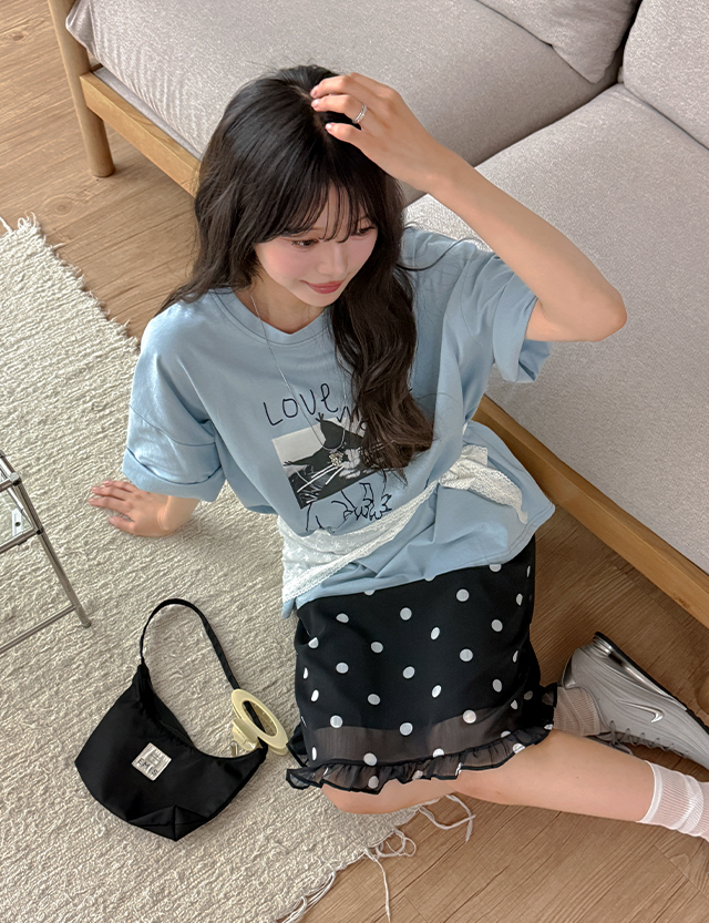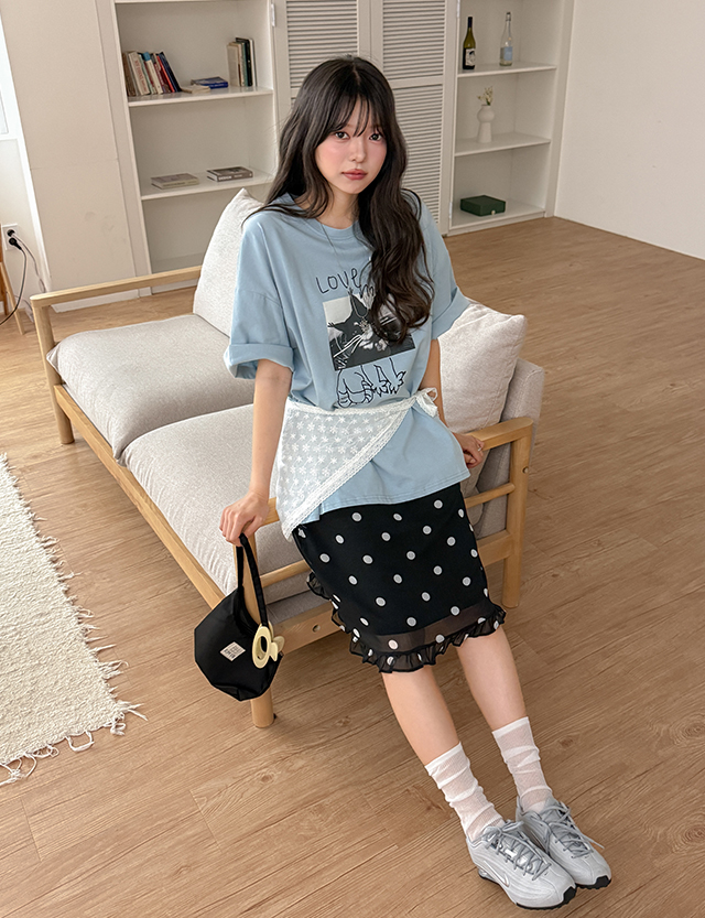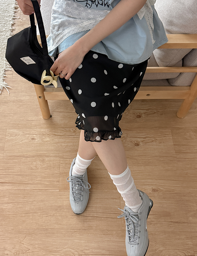 - 러블리한 도트 패턴의 프릴 미디 스커트