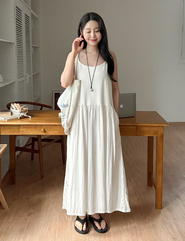 - 끈나시 디테일로 여성스러운 무드