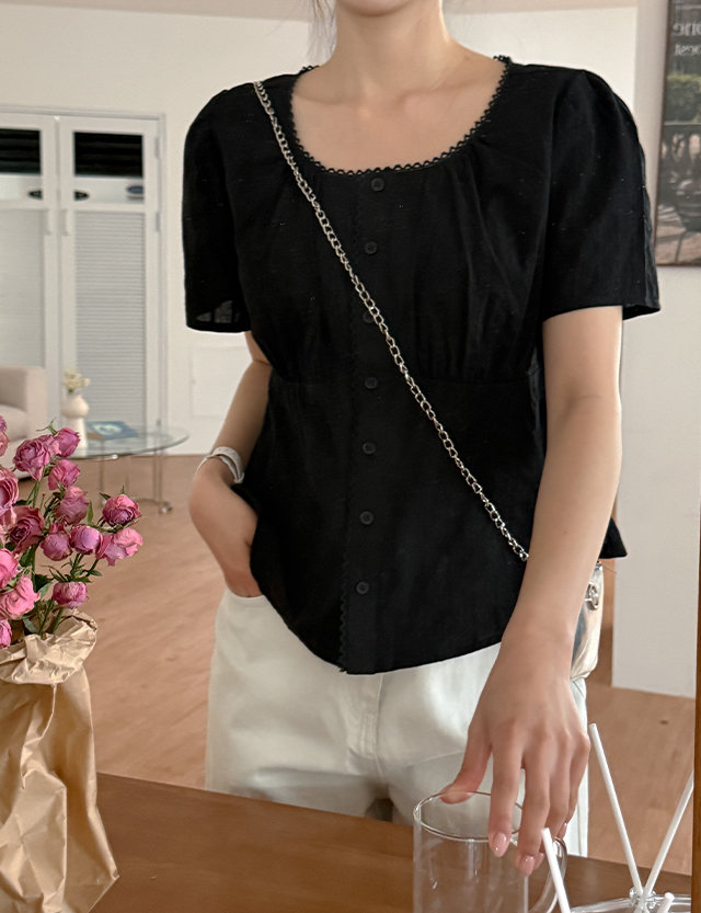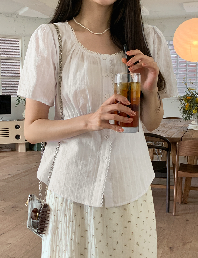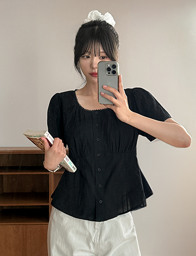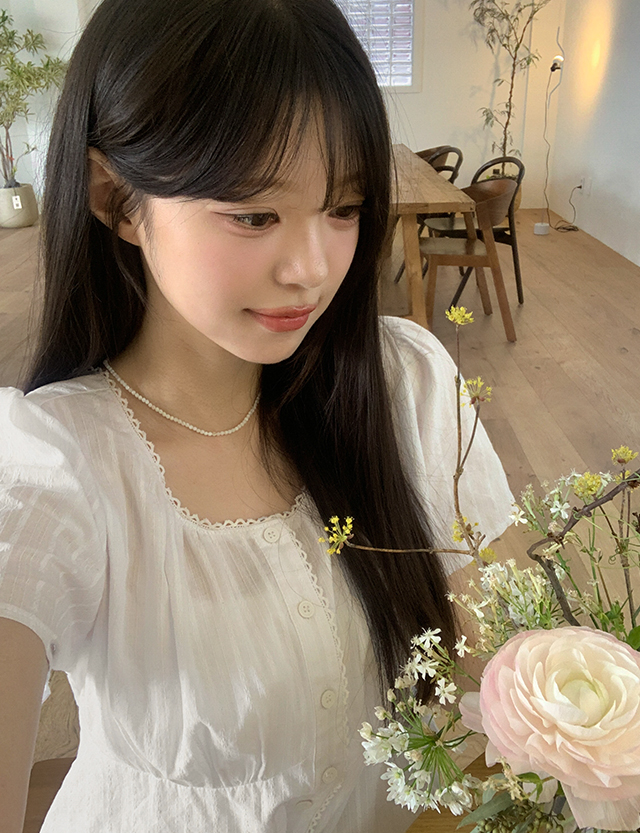 - 잔잔한 자수 원단 사용하여 러블리한 블라우스