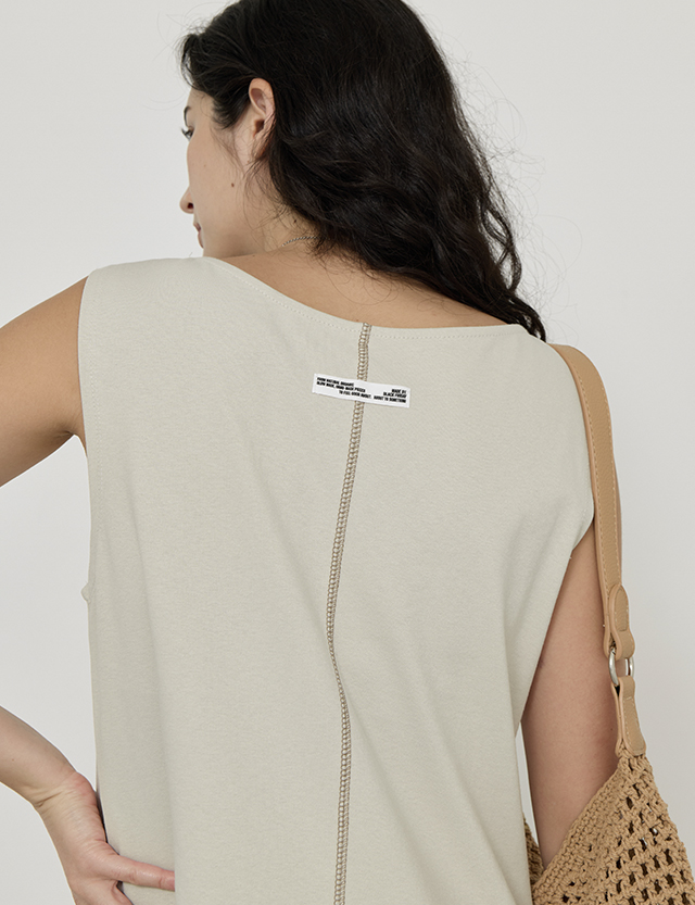 뒷넥라인에 배색 라벨포인트로 시선집중 쁘띠포인트