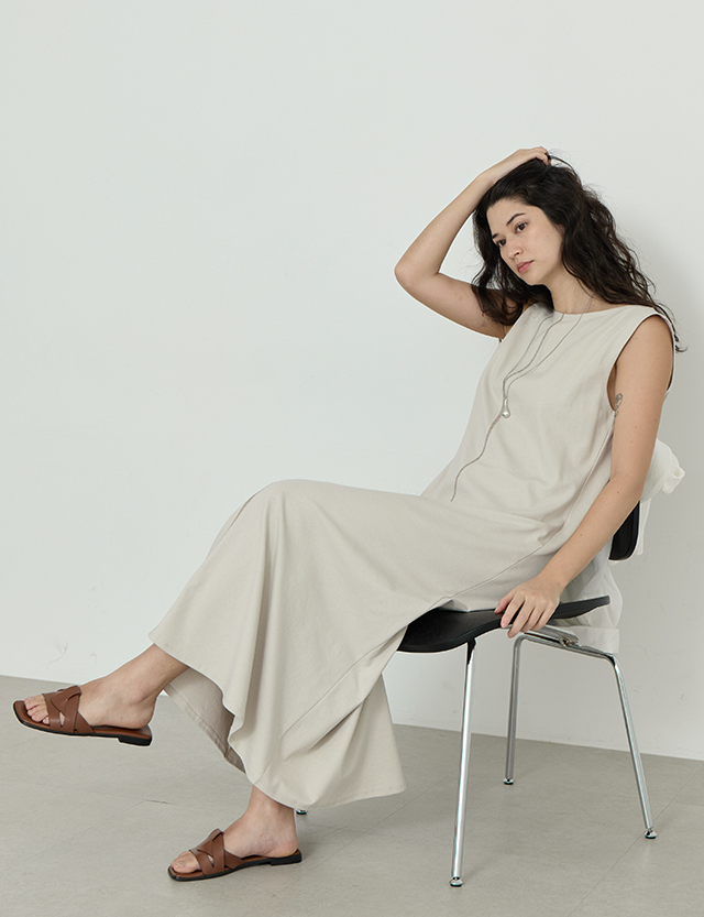 클래시크 톤온톤 背心 长款 连衣裙 87574