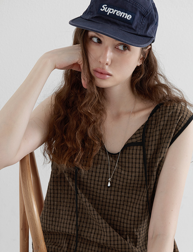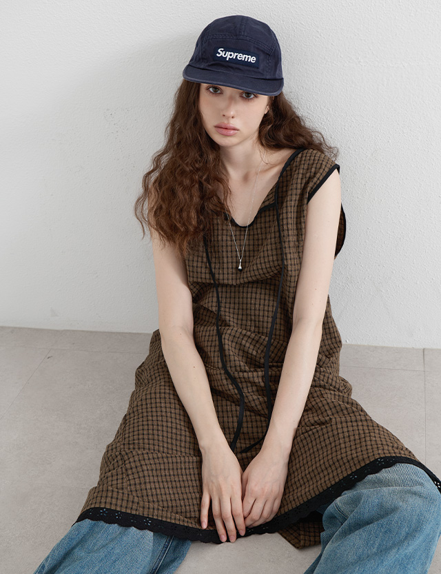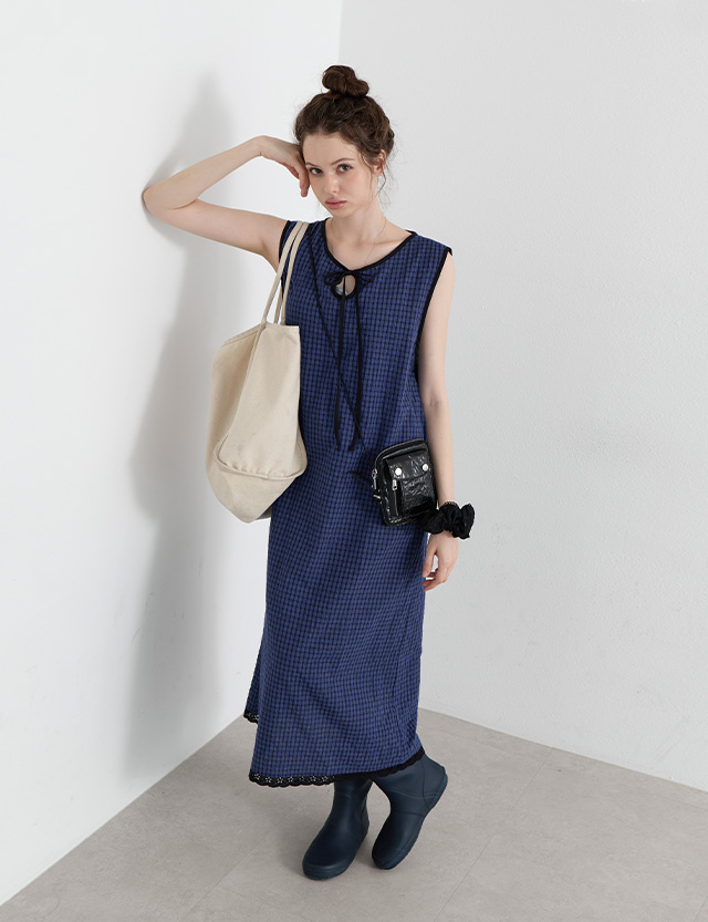 · 은은한 체크 패턴과 배색 포인트가 돋보이는 롱 원피스