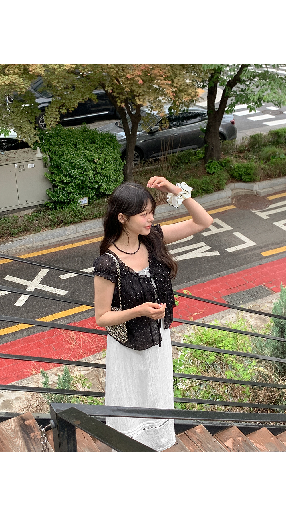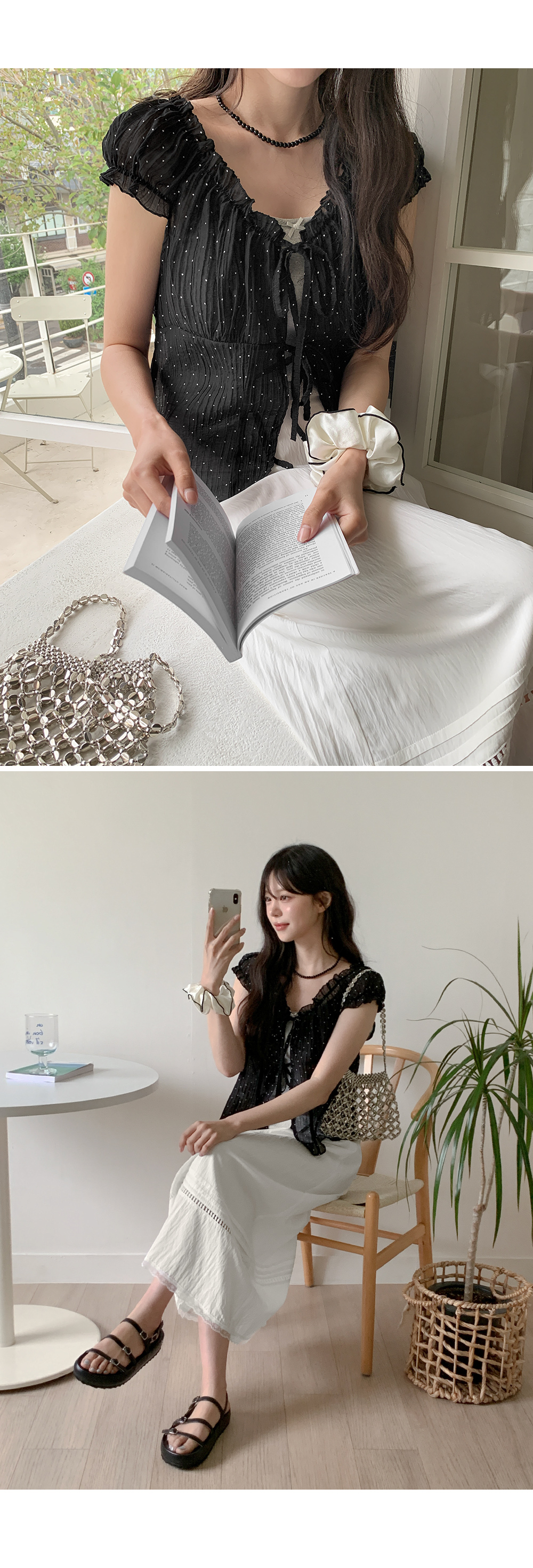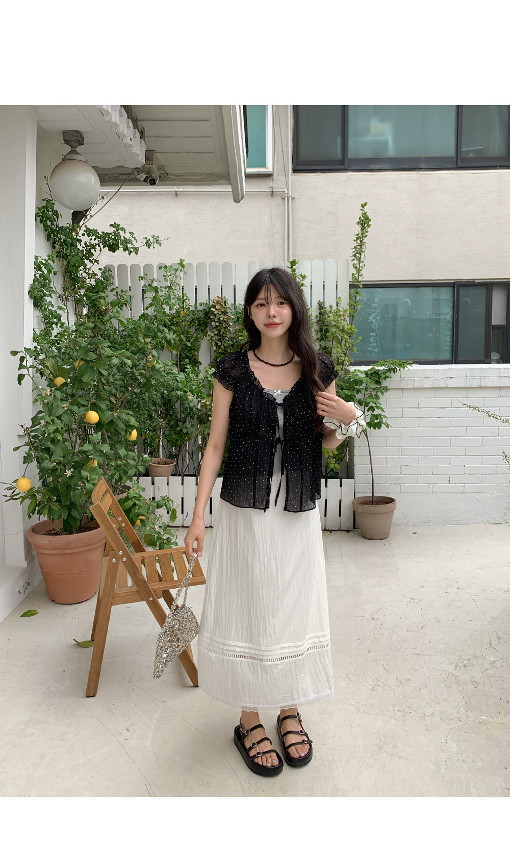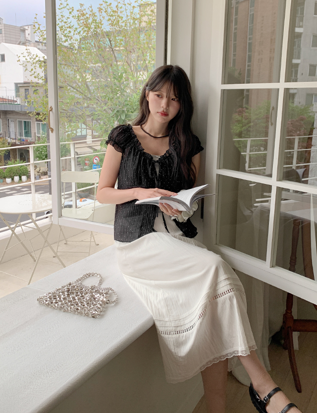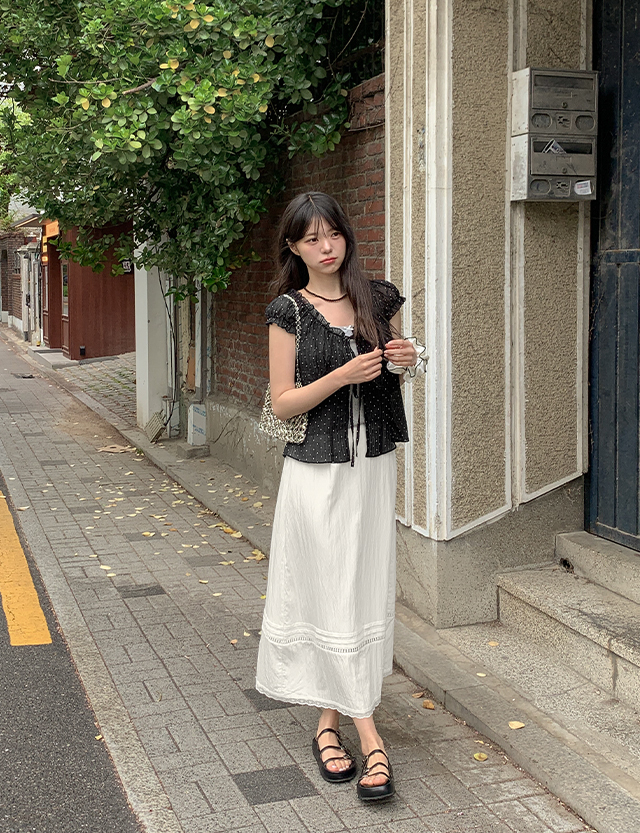 - 레이스 테이프와 밑단에 러블리한 레이스를 덧대주어