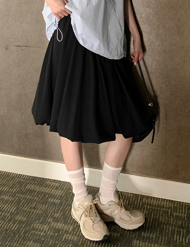 디포브 松紧带 蓬蓬裙 미디 裙子 87654
