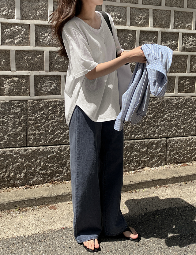 부드럽고 맨질한 터치감의 루즈핏 반팔 티셔츠로