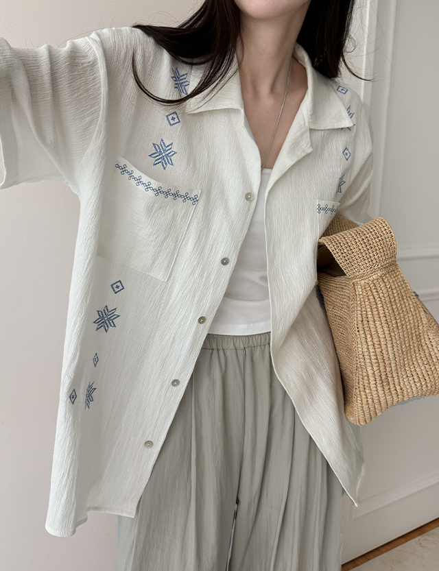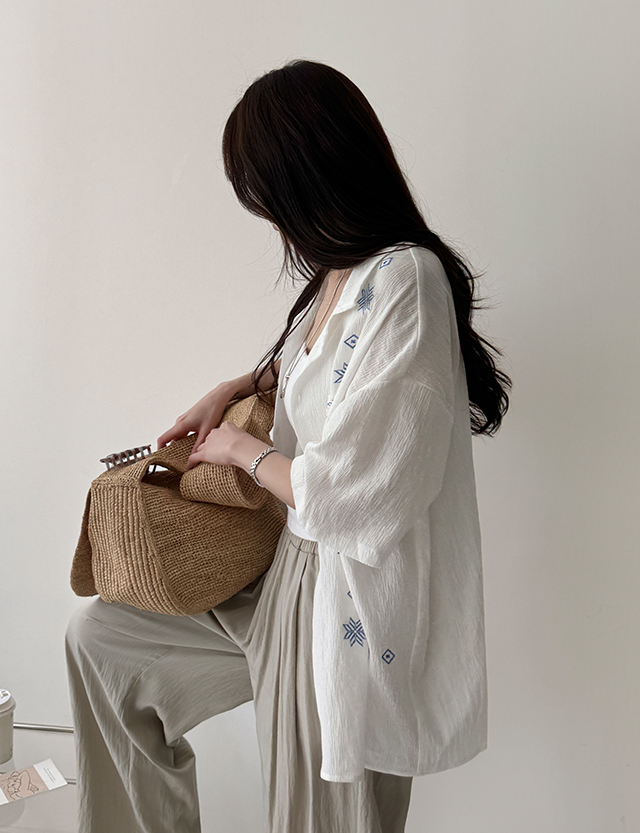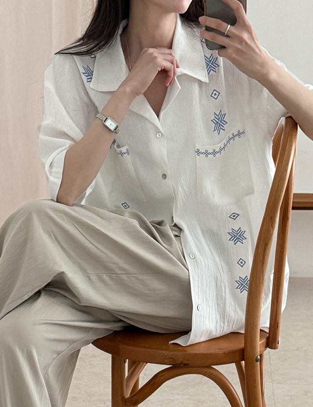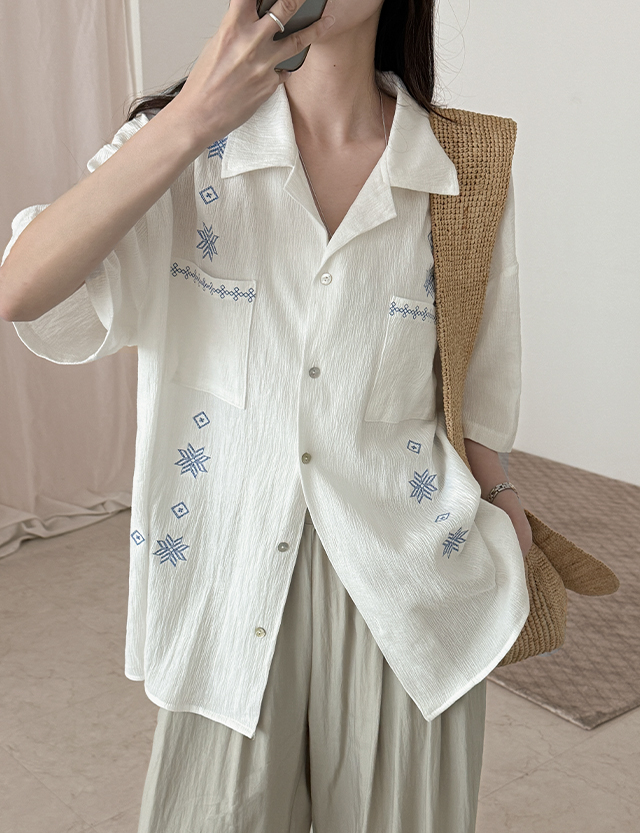 르아 에스닉무드 刺绣 半袖 衬衫 87561