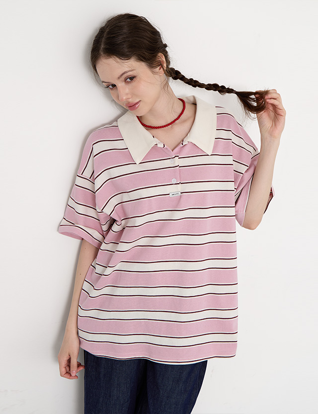Stripe Label Collar T-Shirt