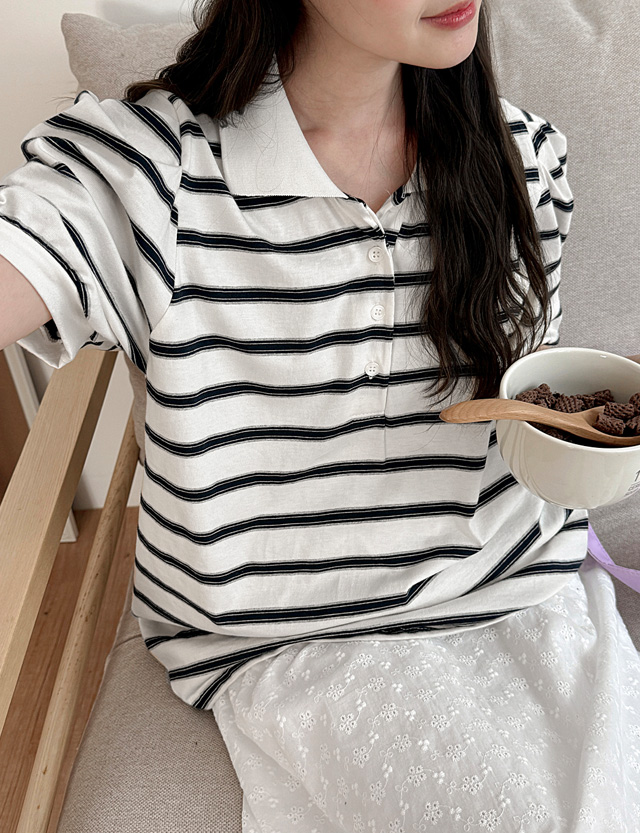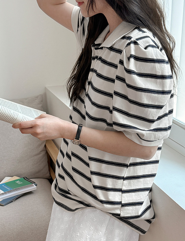 Striped Puff Collar T-shirt