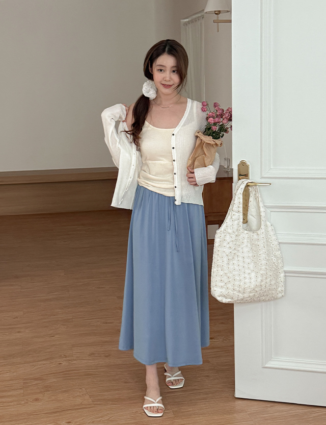 • [特价20%] 찰랑쿨 松紧带 波浪群/喇叭裙 长款 裙子 75184