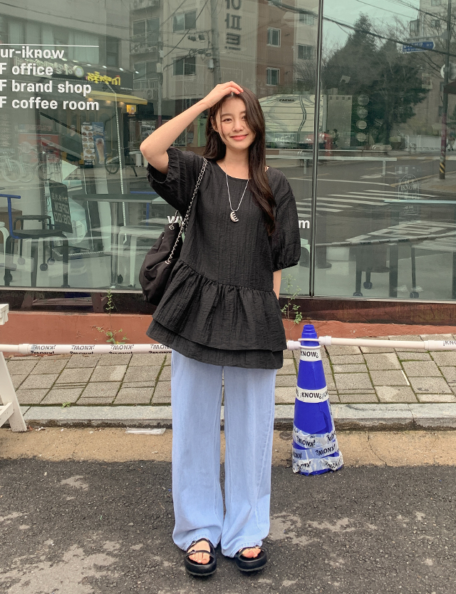 • 엘로라 透明 荷叶裙 女衬衫 87606