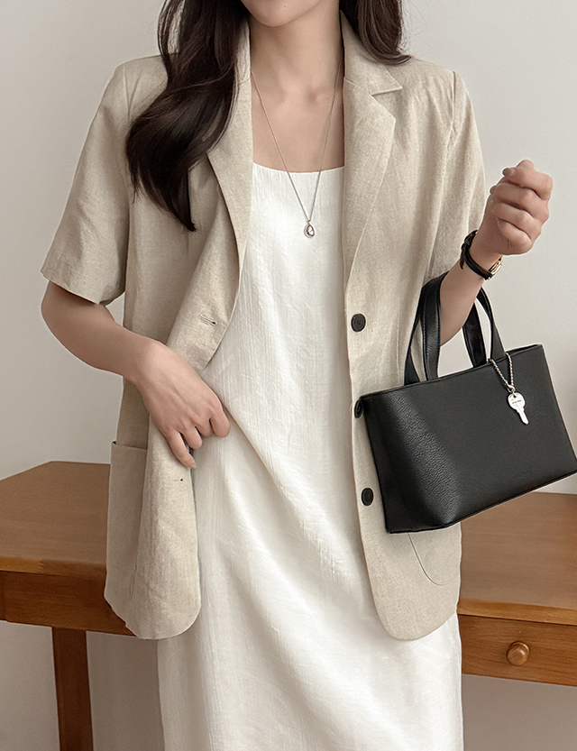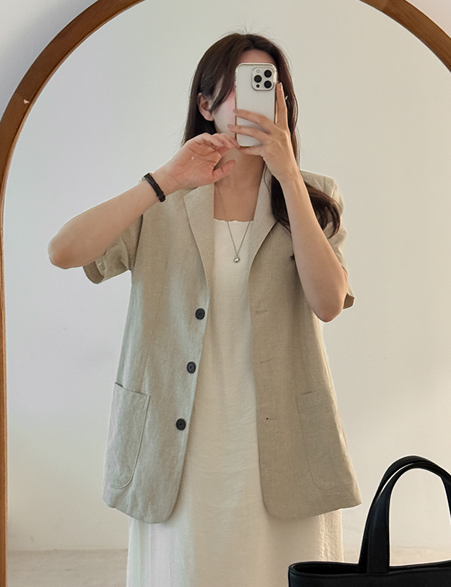 리솔덴 普通款 亚麻 领 半袖 夹克 87595