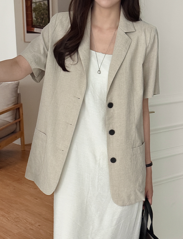 Basic linen collar jacket