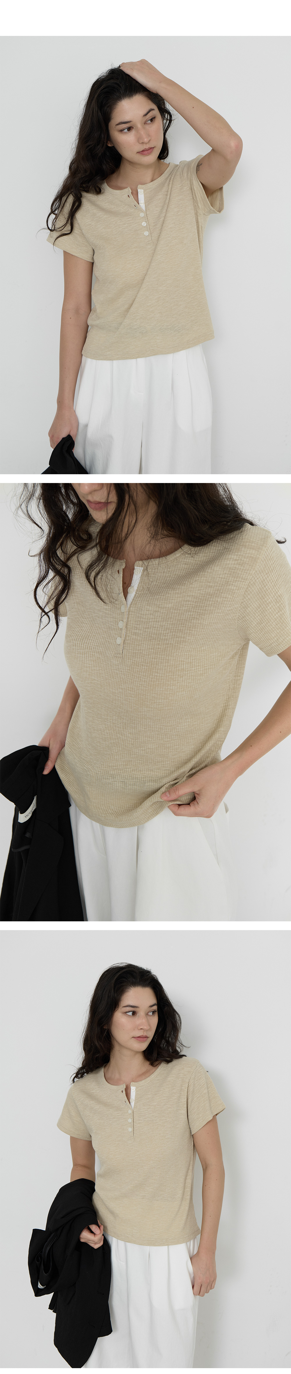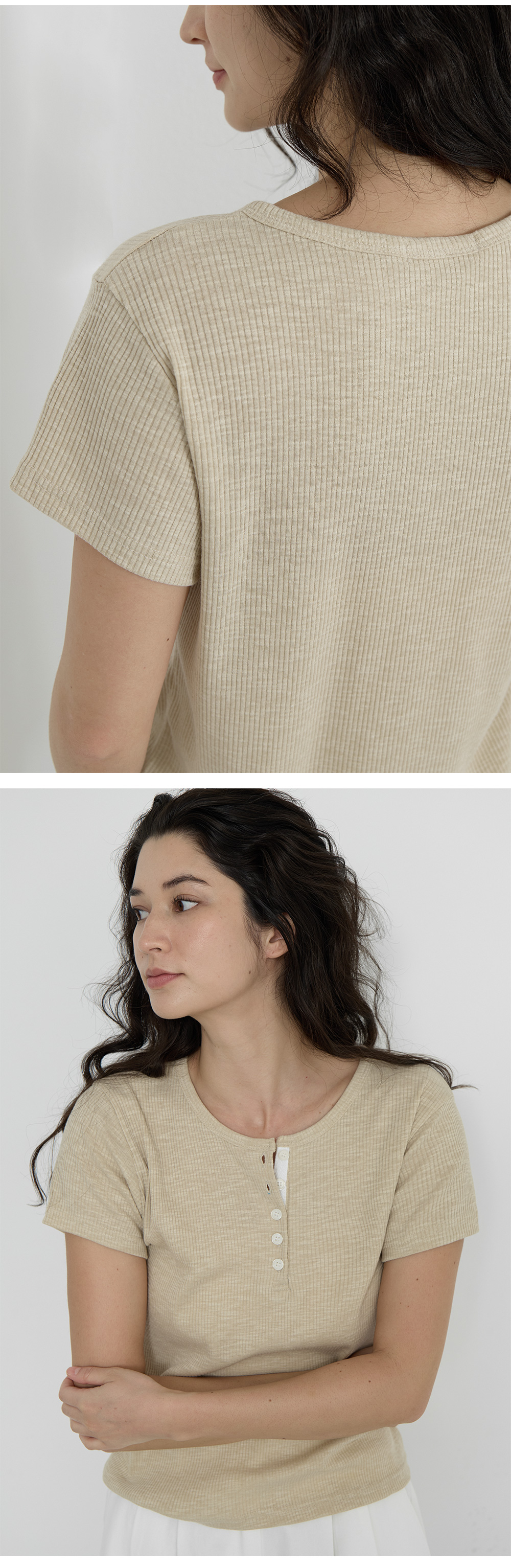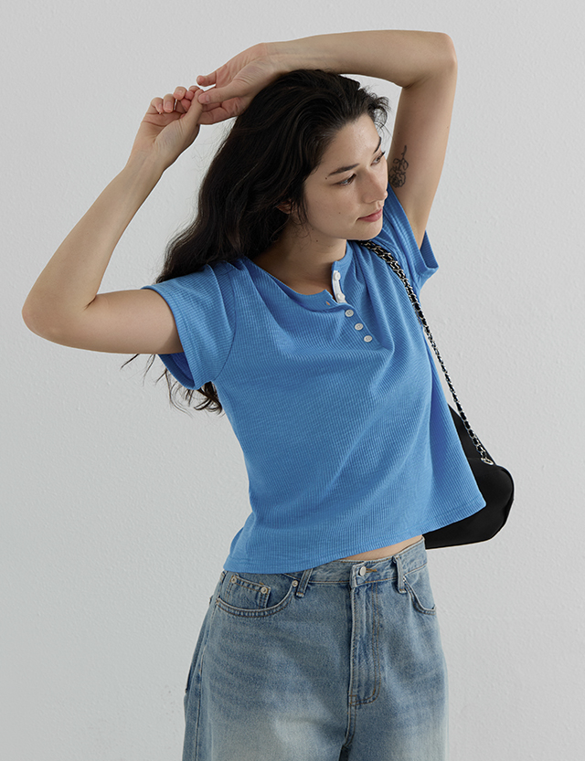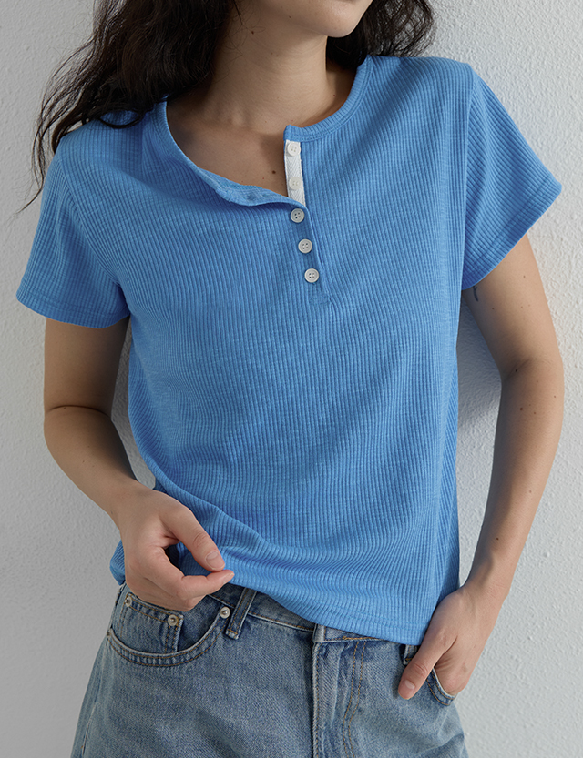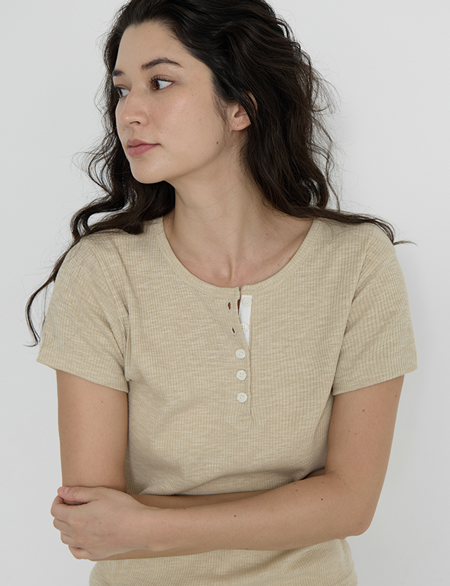 Loop Button Ribbed T-shirt