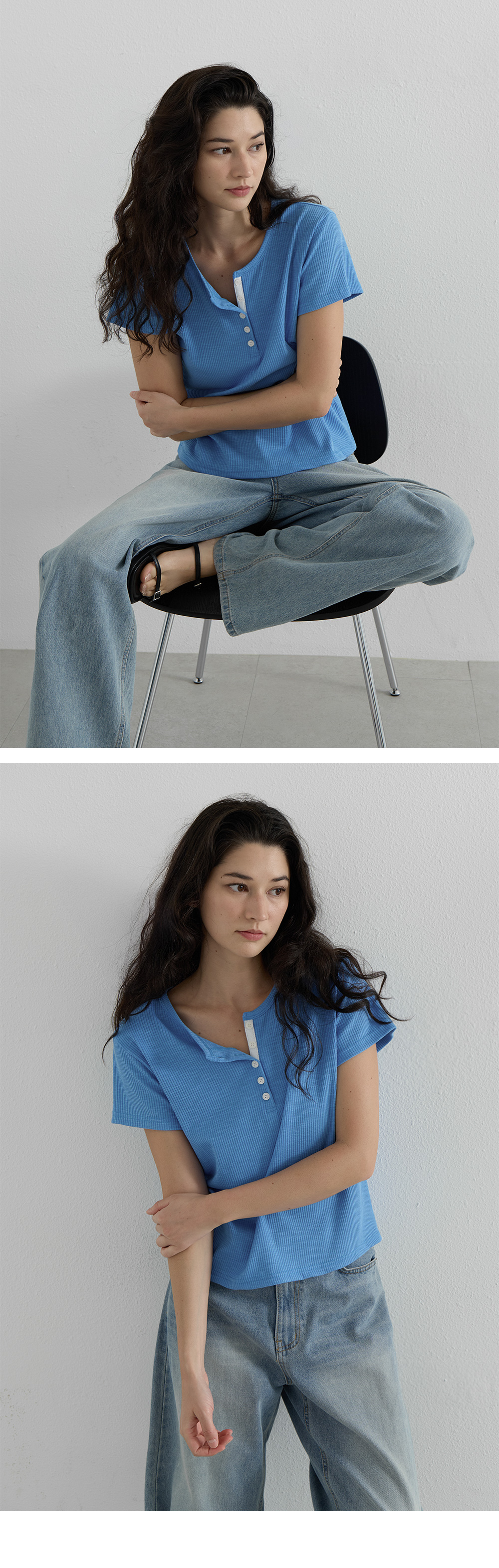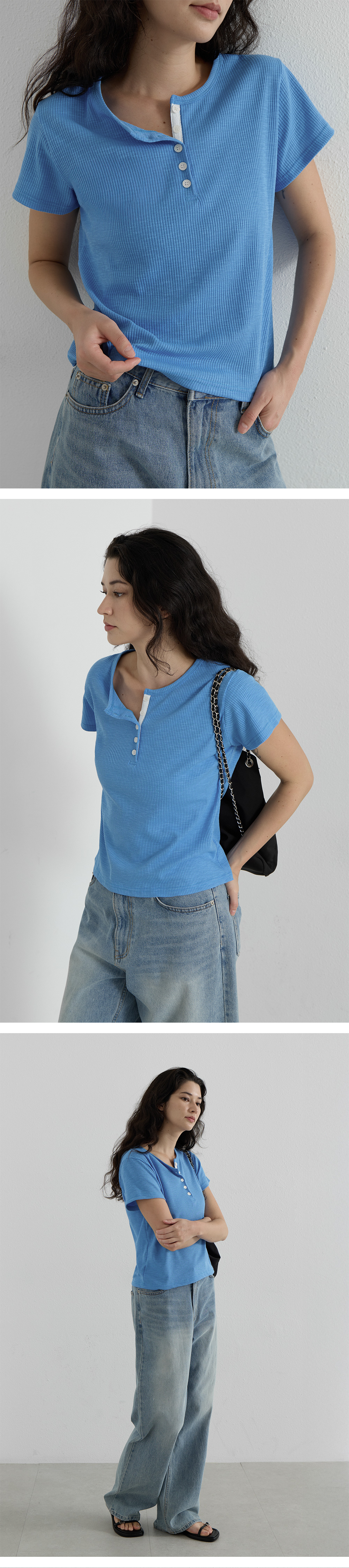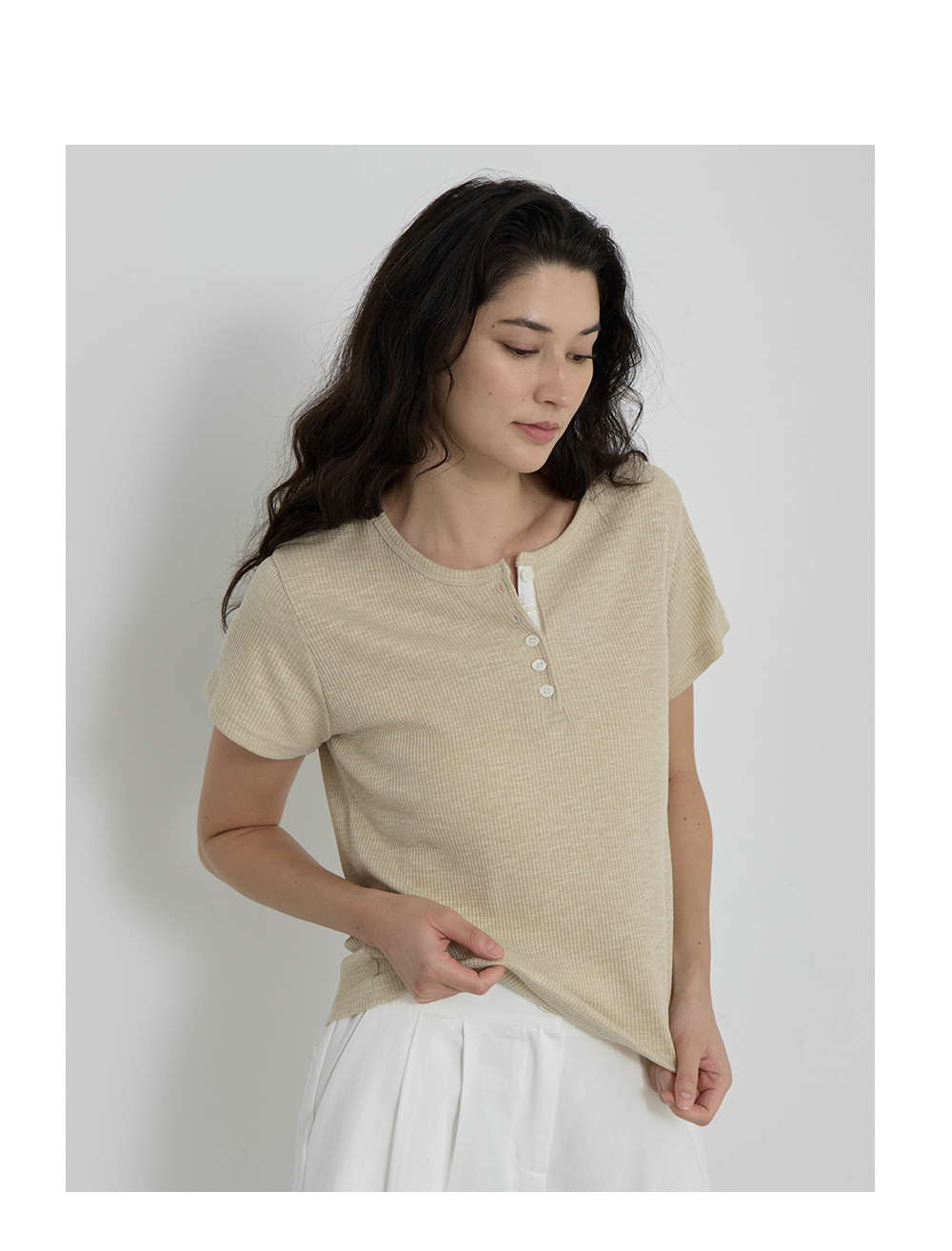 Loop Button Ribbed T-shirt
