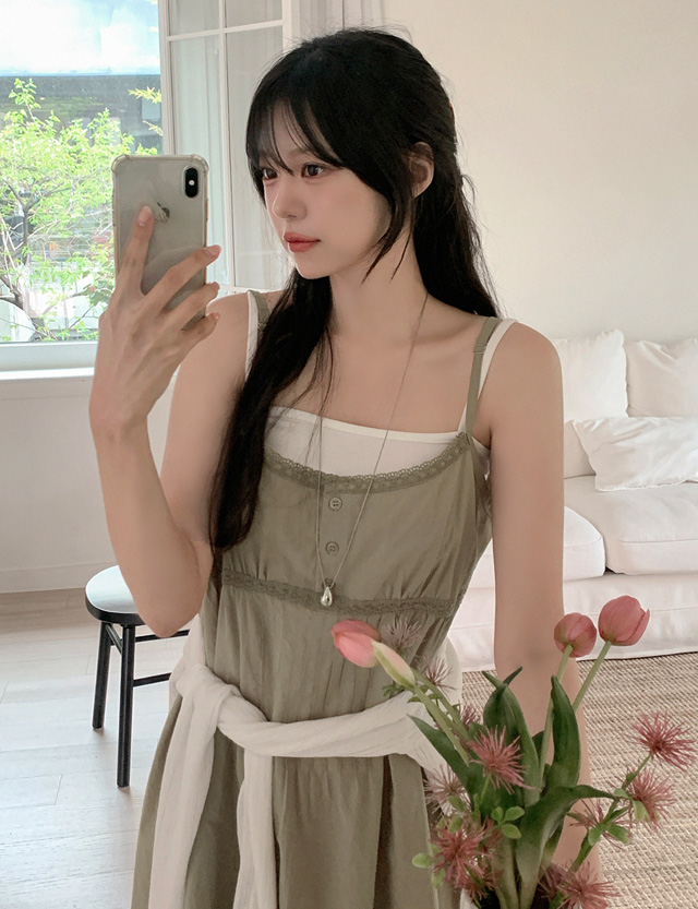 - 끈 조절이 가능한 슬리브리스 디자인으로