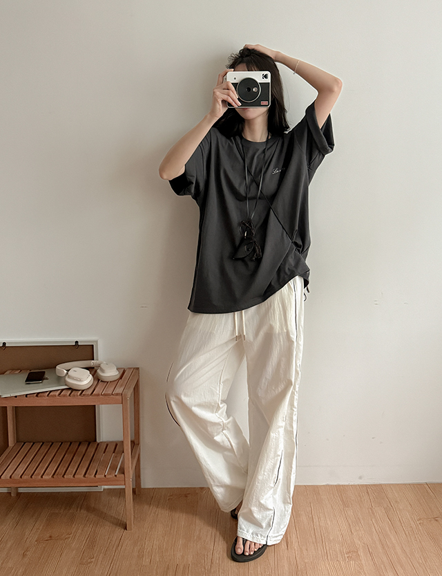 • 라모아 刺绣 실켓 宽松 T恤衫 87771