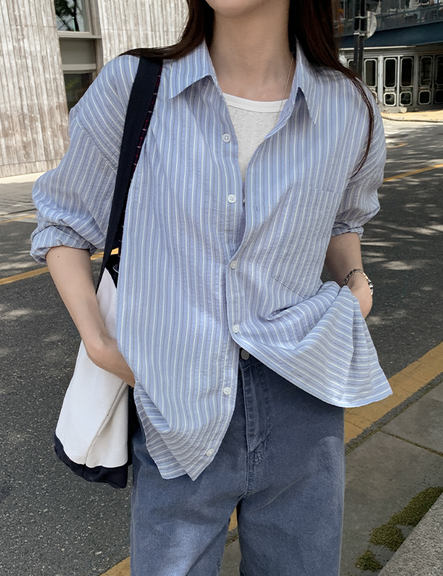 - 스트라이프 패턴으로 깔끔하면서도 캐주얼한 무드를 연출