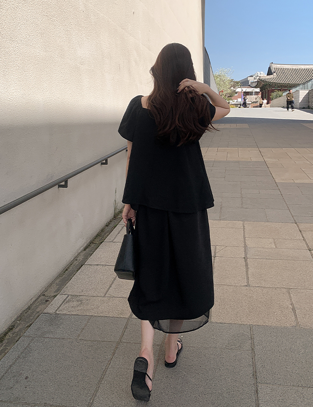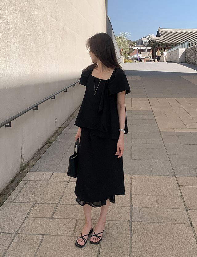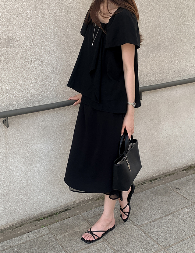 - 밑단 쉬폰 레이어드로 더욱 여리여리한 무드