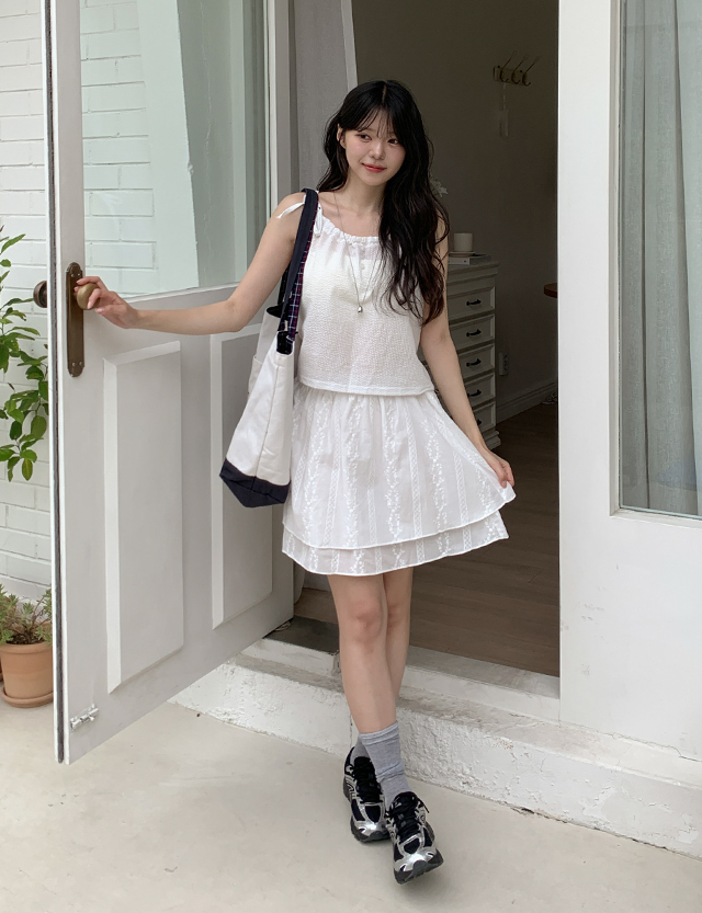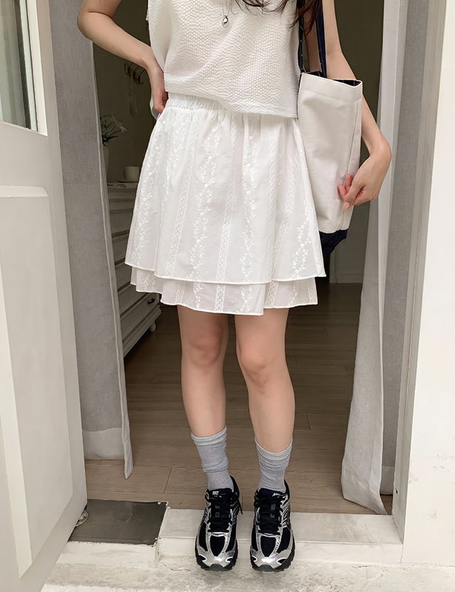 로에앙 花 刺绣 셔링 松紧带 迷你 裙子 87750