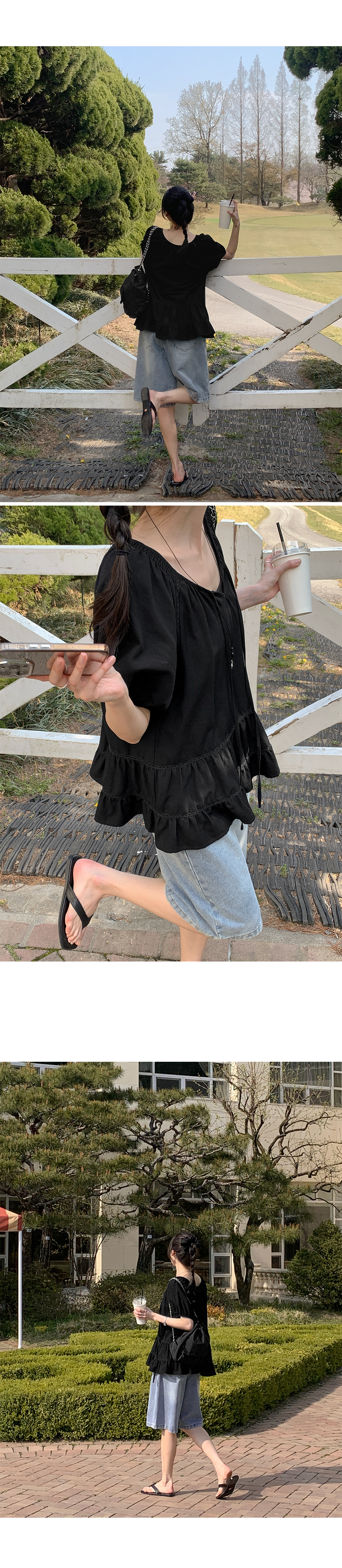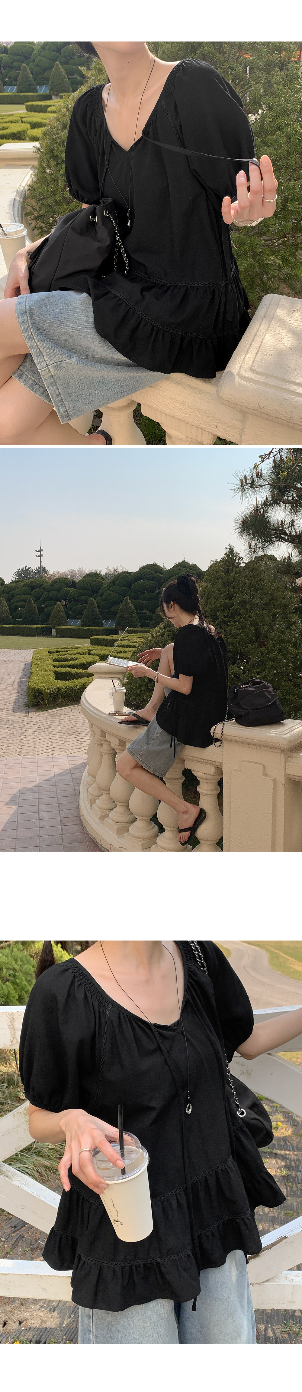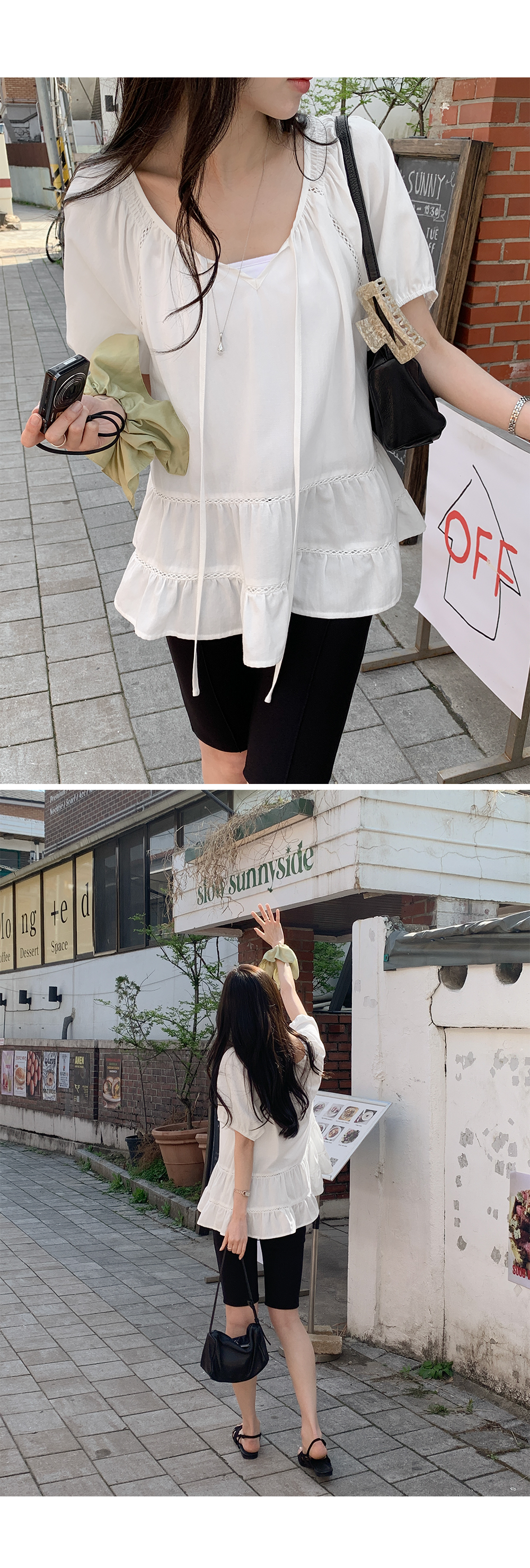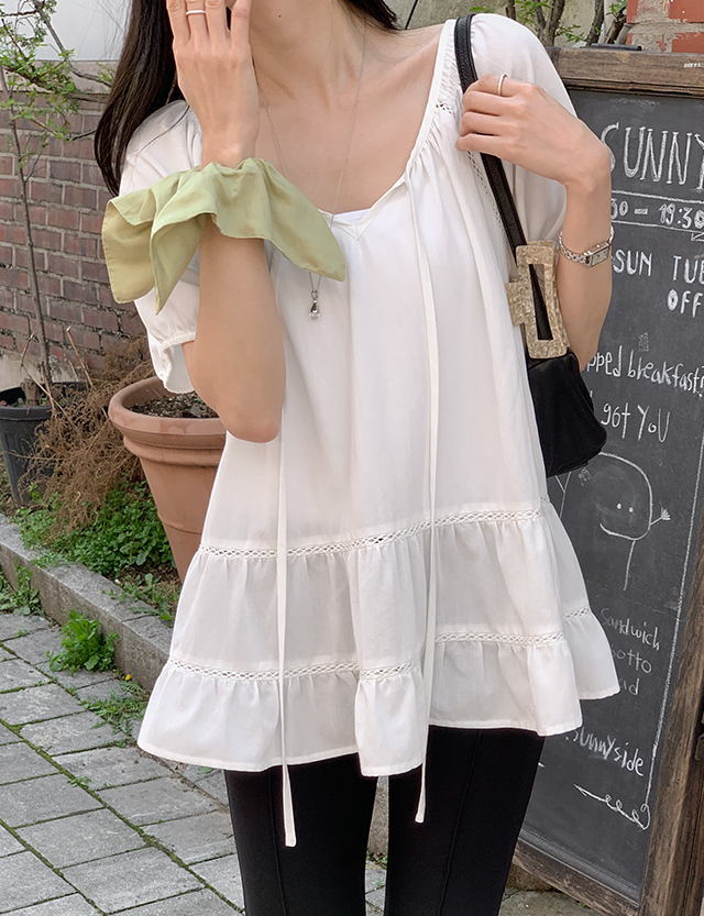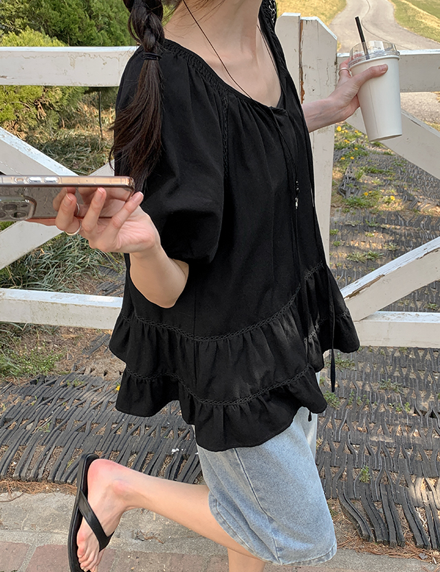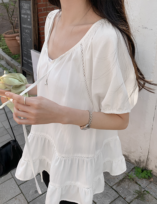 가장 먼저 손이 가게 될 티어드 미디 블라우스예요.