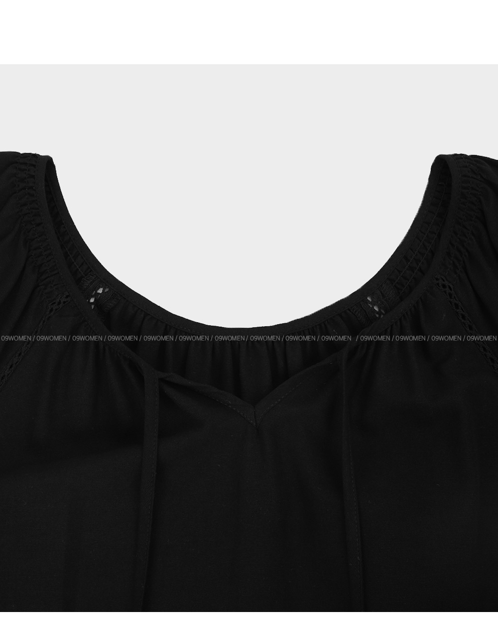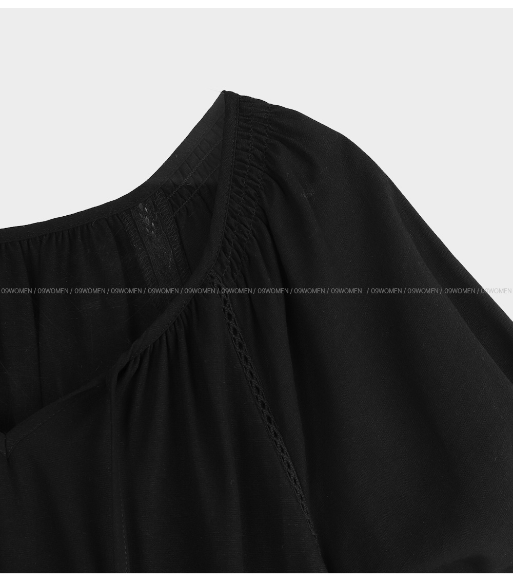 - 넓은 넥라인 디테일로 여리한 넥라인 완성