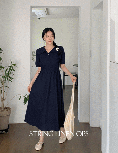 타스니 串 亚麻 长款 连衣裙 75474