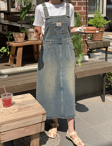 스테즈 牛仔色 工装裤 背带裤 长款 连衣裙 75551