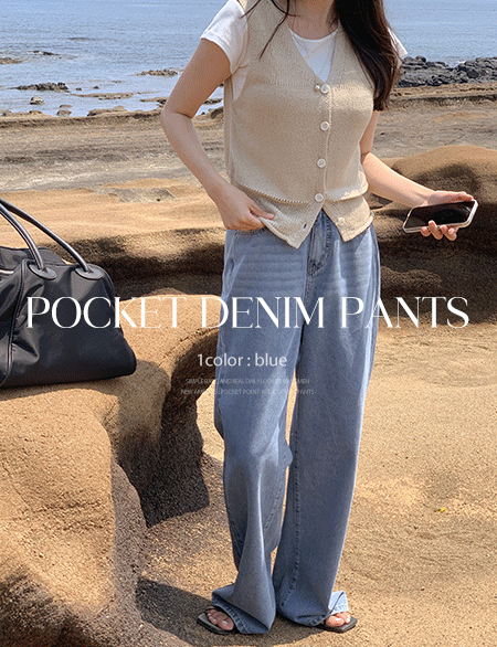 카히티 포켓 关键点 宽 牛仔色 短裤 81838