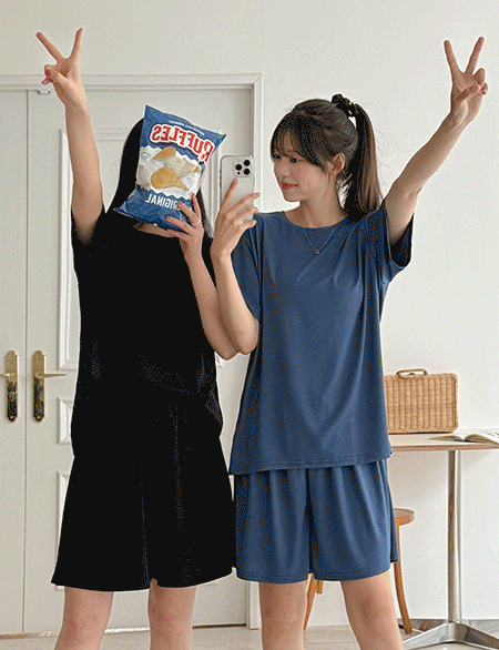 [가성비템] 이지업 每日一次 半袖, 松紧带 短裤 设置 81985