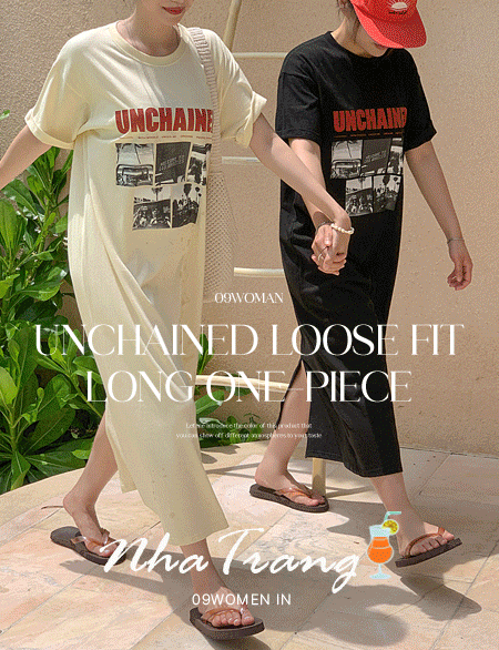 언체인드 宽松 印刷 长款 连衣裙 82290