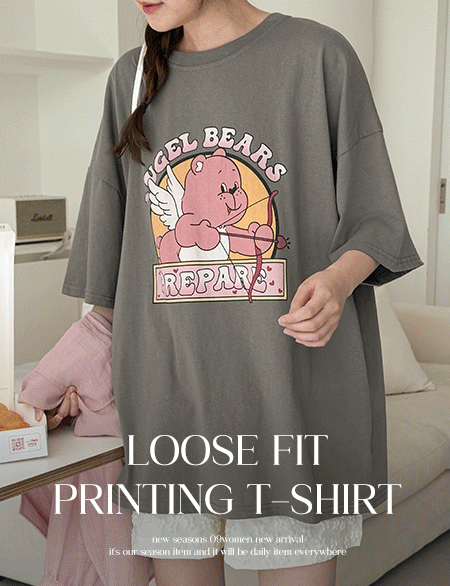[09초이스] 심쿵곰돌이 宽松 印刷 半袖 T恤衫 83255
