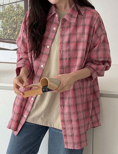 크렌벨 宽松 复古/仿旧 格子 衬衫 83435