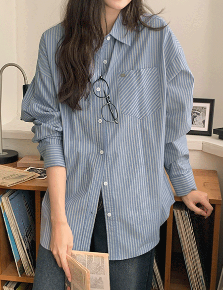 어텀무드 宽松 条纹 衬衫 83636