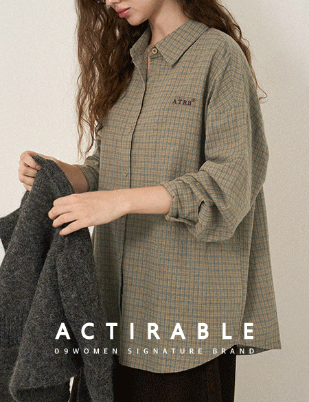 초코무스 宽松 格子 刺绣 衬衫 83637