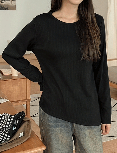 쫀쫀쿠키 普通款 竖纹 圆领 T恤衫 84155