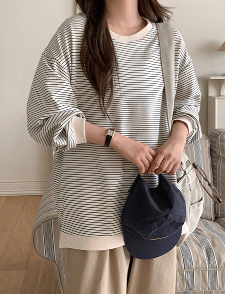 쥬비덴 宽松 条纹 套头卫衣 84216