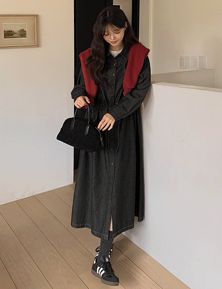 웨스틴 宽松 牛仔色 长款 连衣裙 84326