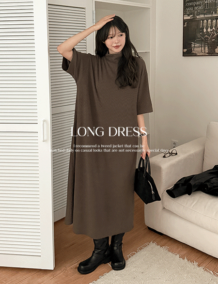 퓨나 반목 竖纹 半袖 长款 连衣裙 84158